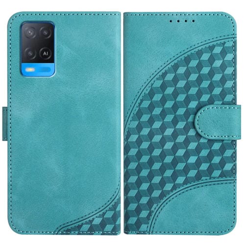Para Oppo A54 5G / A74 5G / A93 5G Yx0060 Funda de Cuero para Teléfono con Relieve y Cabeza de Elefante con Cordón (Azul Claro)