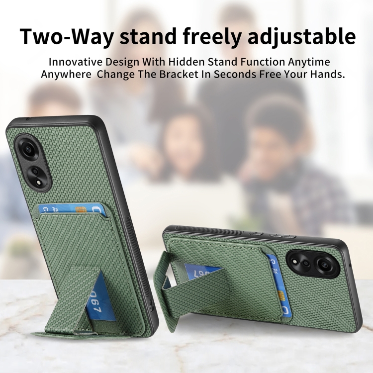 Para Oppo A57 4G Funda para Teléfono con Soporte Plegable y Bolsa para Tarjetas de Fibra de Carbono (Verde)