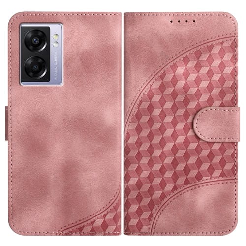 Para Oppo A57 5G / A77 5G / A57 4G Global Yx0060 Funda de Cuero para Teléfono con Relieve y Cabeza de Elefante con Cordón (Rosa)