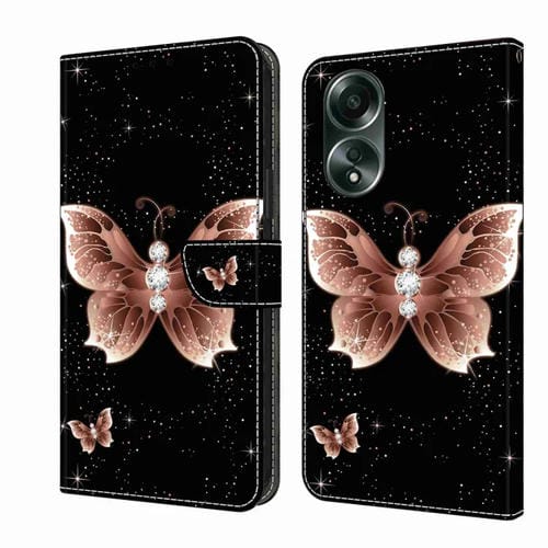 Para Oppo A58 4G Crystal 3D Funda Protectora de Cuero para Teléfono a Prueba de Golpes (Mariposa de Diamante Rosa)