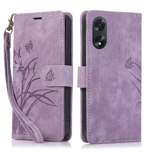 Para Oppo A58 4G Orchid Butterfly Funda de Cuero para Teléfono En Relieve (Púrpura)