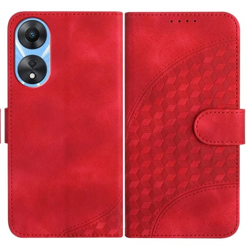 Para Oppo A58 4G Yx0060 Funda de Cuero para Teléfono con Relieve y Cabeza de Elefante con Cordón (Rojo)