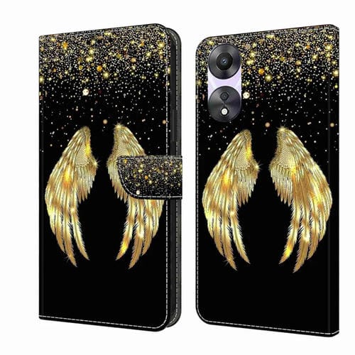 Para Oppo A58 5G Crystal 3D Funda Protectora de Cuero para Teléfono a Prueba de Golpes (Alas Doradas)