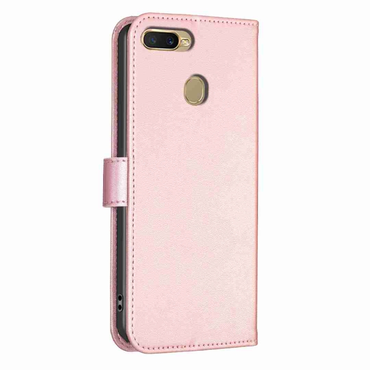 Para Oppo A7 Funda de Cuero con Relieve de Cuatro Hojas (Rosa)