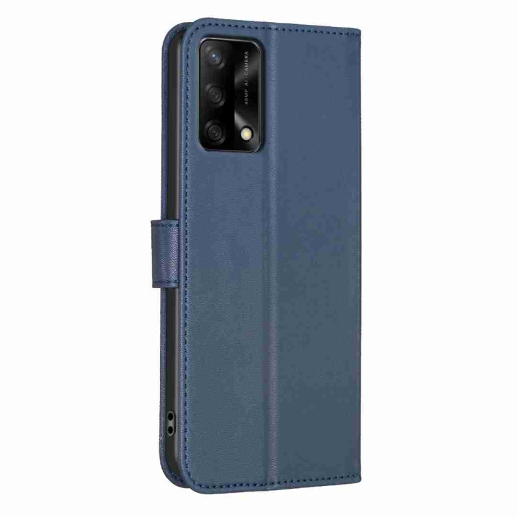 Para Oppo A74 4G / F19 4G Funda para Teléfono de Cuero con Relieve de Cuatro Hojas (Azul)