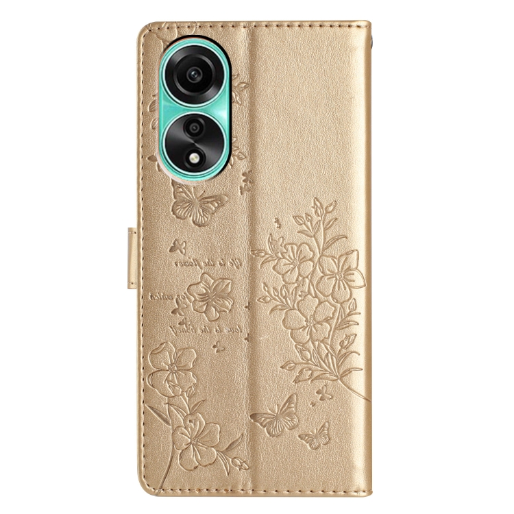 Para Oppo A78 4G Butterfly Love Flower Funda de Cuero para Teléfono En Relieve (Oro)