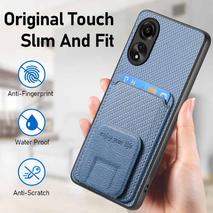 Para Oppo A78 4G Funda para Teléfono con Soporte Plegable y Bolsa para Tarjetas de Fibra de Carbono (Azul)