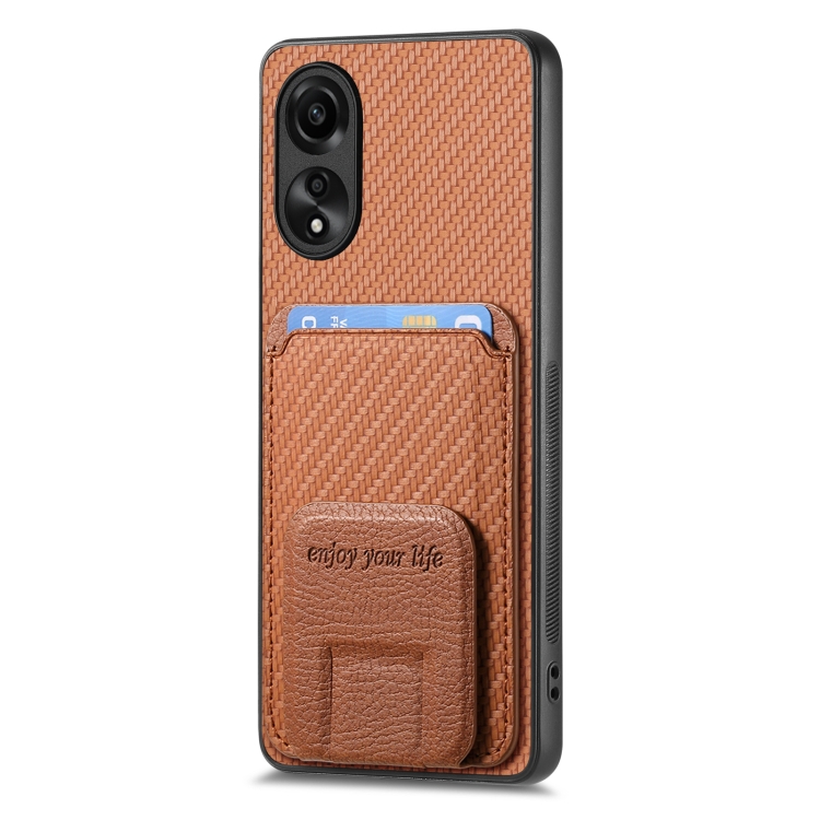 Para Oppo A78 4G Funda para Teléfono con Soporte Plegable y Bolsa para Tarjetas de Fibra de Carbono (Marrón)
