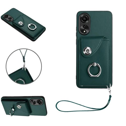 Para Oppo A78 4G Global Organ Card Bag Ring Holder Pu Funda para Teléfono con Cordón (Verde)