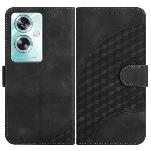 Para Oppo A79 Yx0060 Funda de Cuero para Teléfono con Relieve de Cabeza de Elefante y Cordón (Negro)