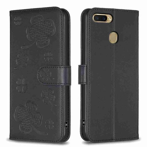 Para Oppo A92 / A72 / A52 Funda para Teléfono de Cuero con Relieve de Cuatro Hojas (Negro)