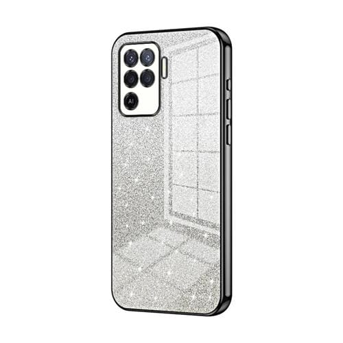 Para Oppo A94 4G Estuche para Teléfono Galvanizado con Polvo de Brillo Degradado (Negro)