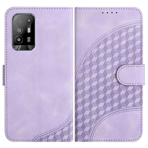 Para Oppo A94 5G / F19 Pro / F19 Pro + 5G / A94 4G Yx0060 Funda de Cuero para Teléfono con Relieve de Cabeza de Elefante y Cordón (Púrpura Claro)