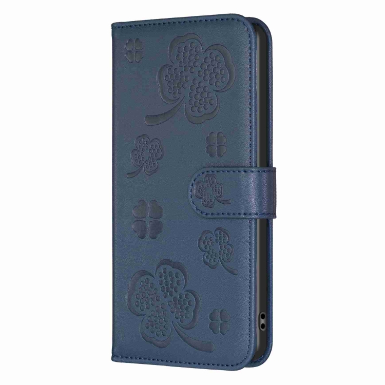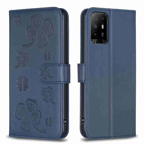 Para Oppo A94 5G / Reno5 Z / F19 Pro + Funda para Teléfono de Cuero En Relieve de Cuatro Hojas (Azul)