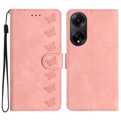 Para Oppo A98 5G Funda para Teléfono de Cuero con Relieve de Siete Mariposas (Rosa)