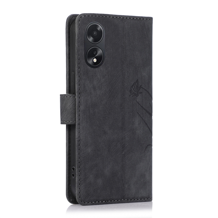 Para Oppo A98 5G Orchid Butterfly Funda de Cuero para Teléfono En Relieve (Negro)