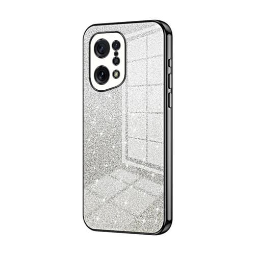Para Oppo Find X5 Estuche para Teléfono Galvanizado con Polvo de Brillo Degradado (Negro)