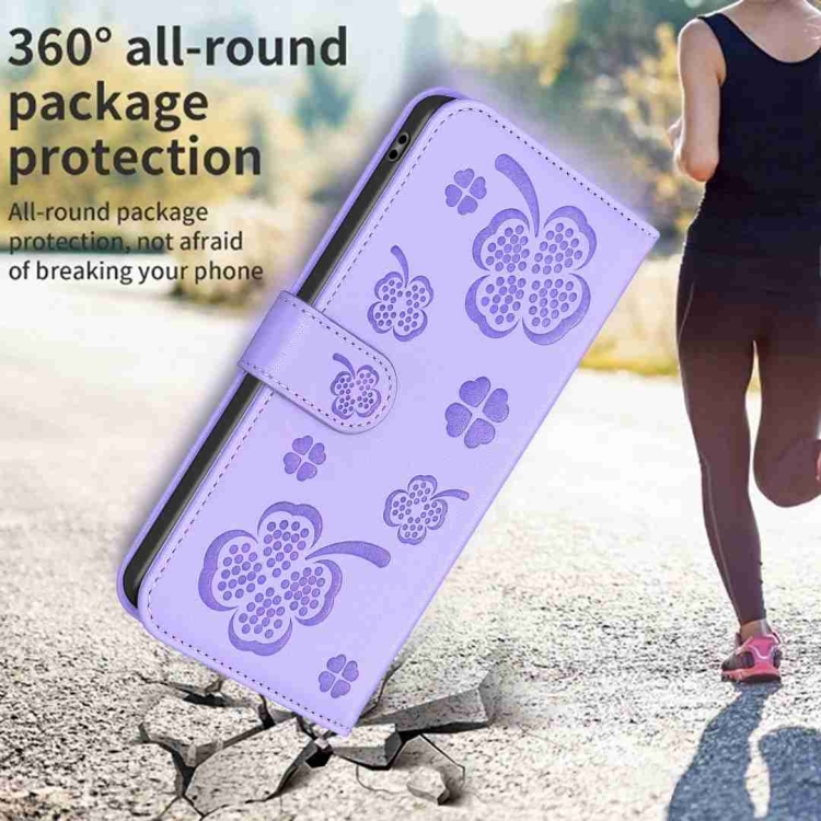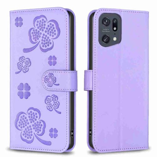 Para Oppo Find X5 Pro Funda de Cuero con Relieve de Cuatro Hojas para Teléfono (Púrpura)