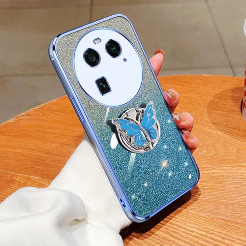 Para Oppo Find X6 Funda para Teléfono de TPU con Soporte de Mariposa con Brillo Degradado Plateado (Azul Sierra)