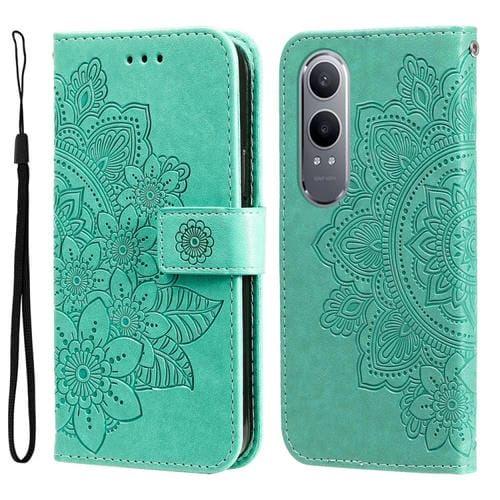 Para Oppo K12X Funda de Teléfono de Cuero con Estampado de Flores de Siete Pétalos (Verde)