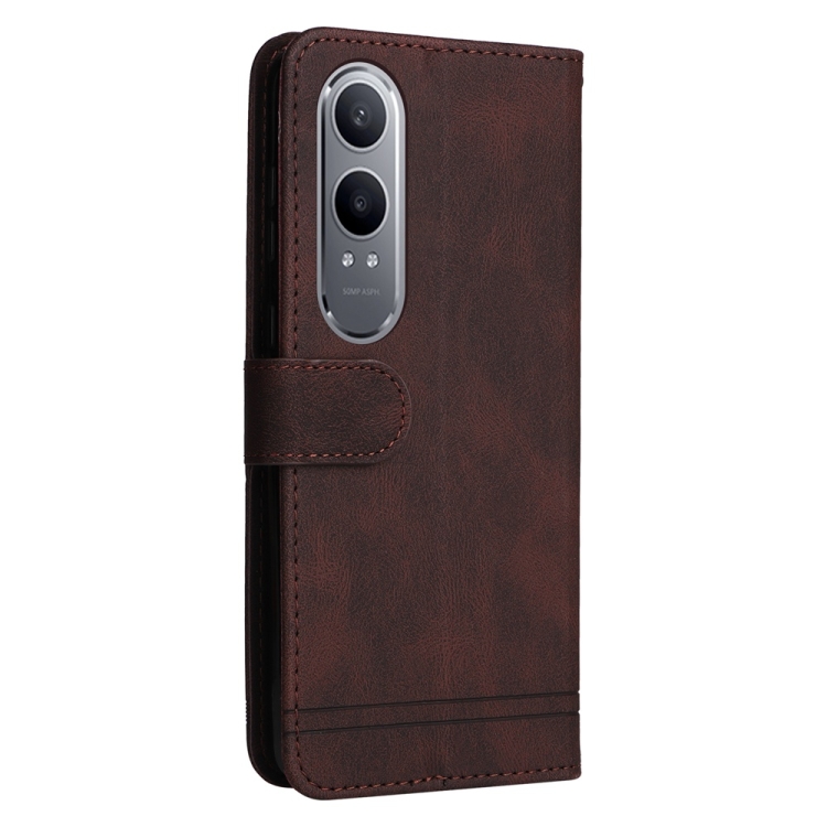 Para Oppo K12X Skin Feel Life Tree Funda de Cuero con Botón de Metal para Teléfono (Marrón)