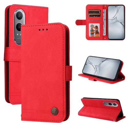 Para Oppo K12X Skin Feel Life Tree Funda de Cuero con Botón de Metal (Rojo)