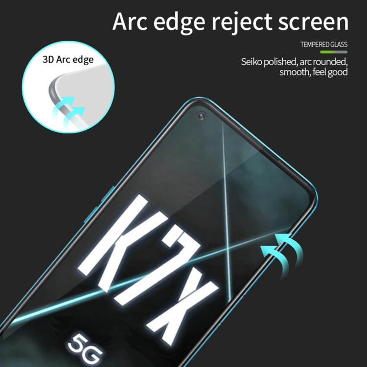 Para Oppo K7X Pinwuyo 9H Cintura Curva Curdada 3D Película de Vidrio a Prueba de Explosiones (Negro)