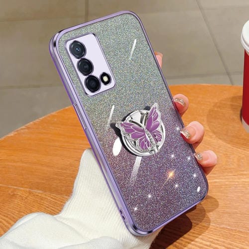 Para Oppo K9 Funda para Teléfono de TPU con Soporte de Mariposa con Brillo Degradado Plateado (Púrpura)