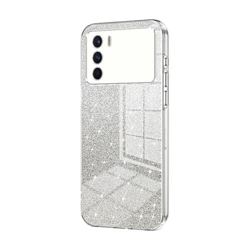 Para Oppo K9 Pro Estuche para Teléfono Galvanizado con Polvo de Brillo Degradado (Transparente)
