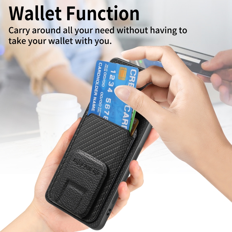 Para Oppo Reno10 Global Funda para Teléfono con Soporte Plegable y Bolsa para Tarjetas de Fibra de Carbono (Negro)