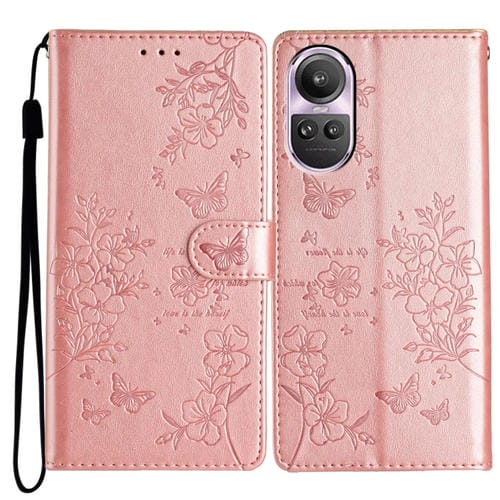 Para Oppo Reno10 / Reno10 Pro Funda de Teléfono de Cuero con Relieve de Flor de Amor y Mariposa (Oro Rosa)