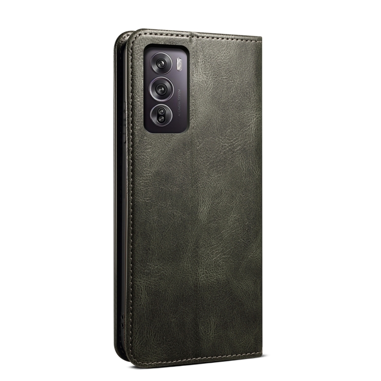 Para Oppo Reno12 5G Global Oil Wax Crazy Horse Texture Funda de Cuero para Teléfono (Verde Oscuro)
