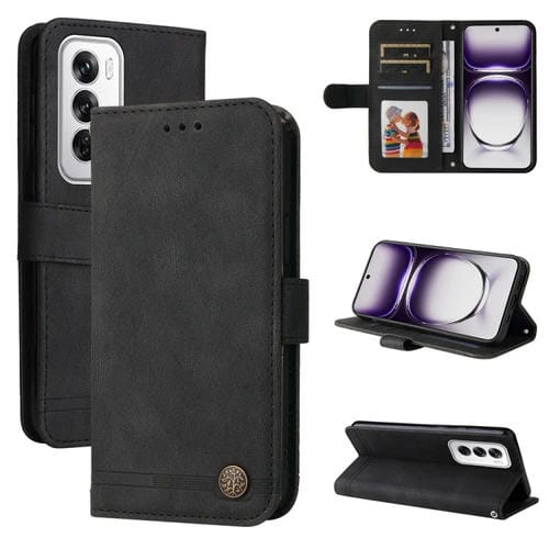 Para Oppo Reno12 5G Global Skin Feel Life Tree Funda de Cuero con Botón de Metal (Negro)