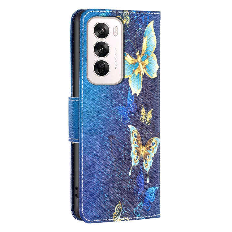 Para Oppo Reno12 Funda de Cuero para Teléfono con Patrón de Dibujo Coloreado Global (Mariposa Dorada)