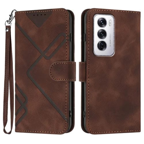 Para Oppo Reno12 Funda de Teléfono de Cuero con Sensación de Piel con Patrón de Línea Global (Café)