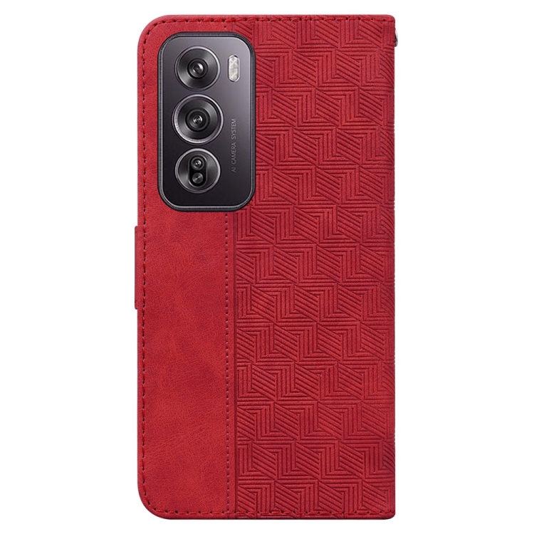 Para Oppo Reno12 Pro 5G Funda de Teléfono de Cuero con Relieve Geométrico Global (Rojo)