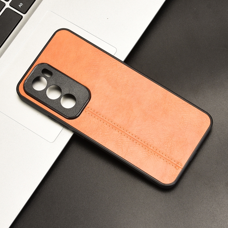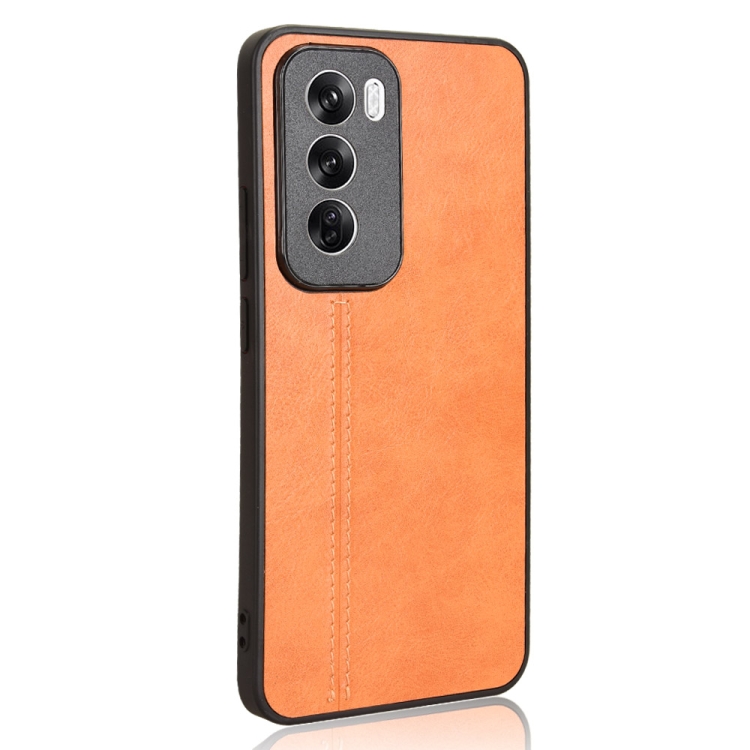 Para Oppo Reno12 Pro 5G Funda para Teléfono con Bolsa para Tarjetas de Costura con Patrón de Vaca Global (Naranja)