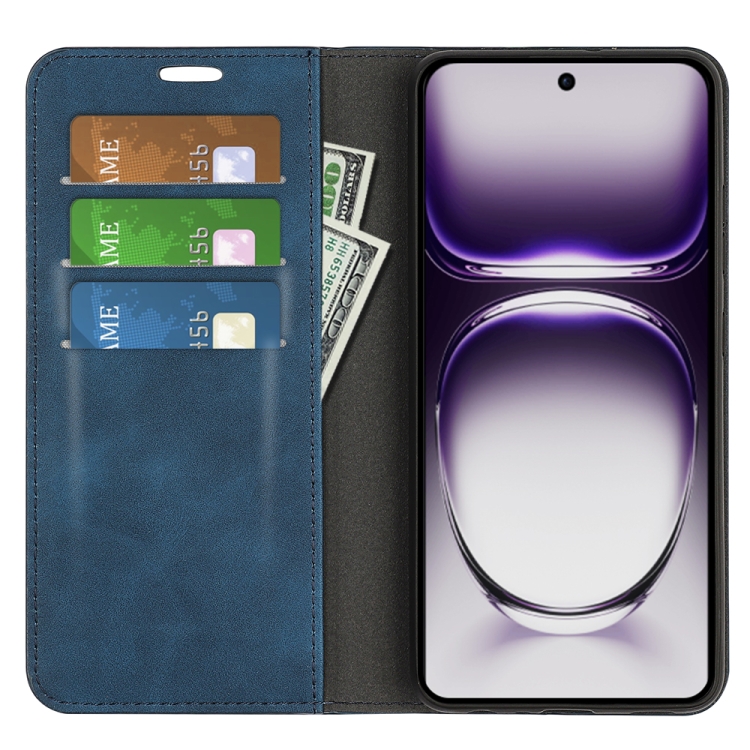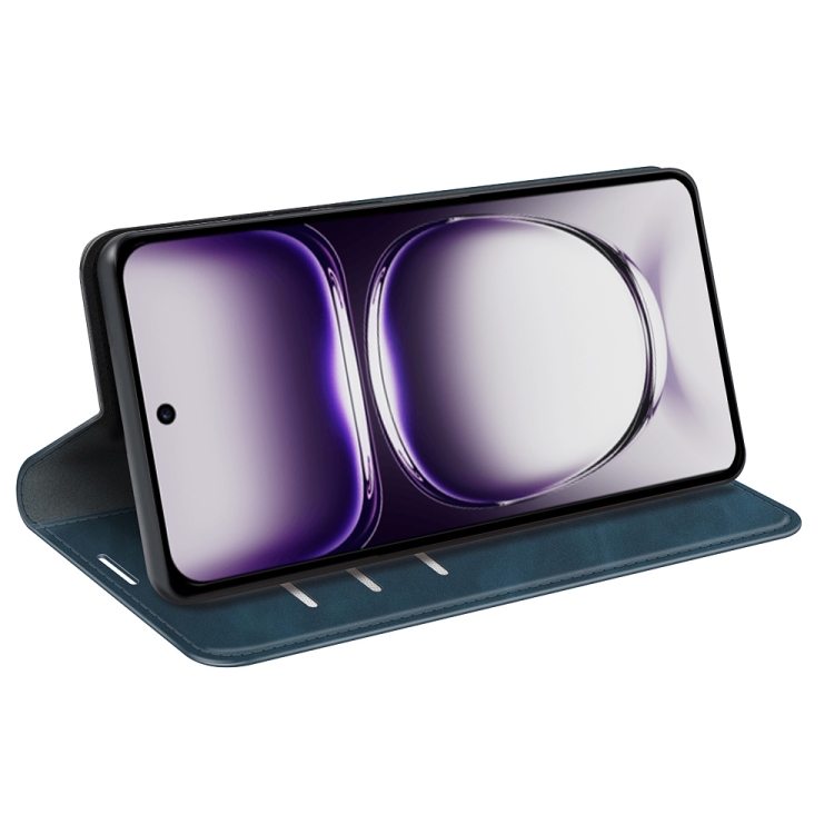 Para Oppo Reno12 Pro 5G Funda para Teléfono de Cuero con Succión Magnética de Piel Retro Global (Azul Oscuro)