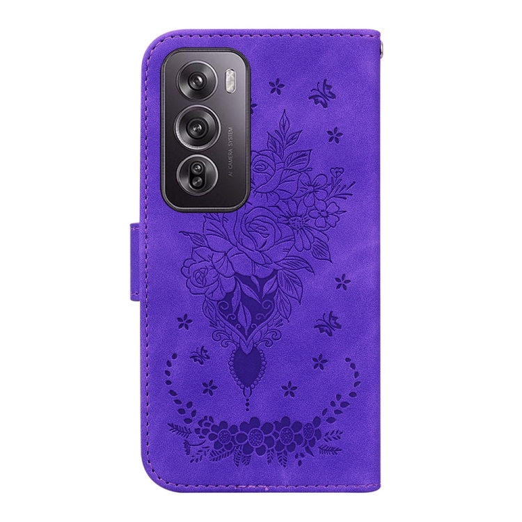 Para Oppo Reno12 Pro 5G Global Butterfly Rose Funda de Cuero para Teléfono En Relieve (Púrpura)