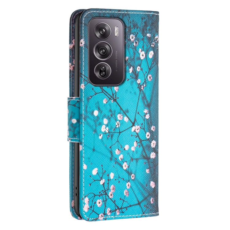Para Oppo Reno12 Pro Funda de Cuero para Teléfono con Patrón de Dibujo Coloreado Global (Flor de Ciruelo)