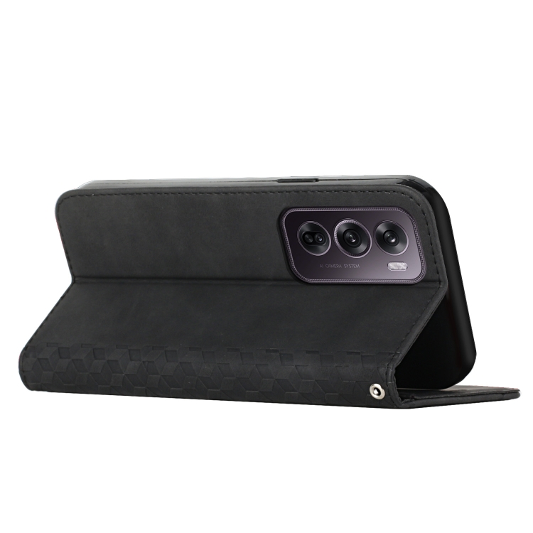 Para Oppo Reno12 Pro Global Diamond Splicing Skin Feel Funda de Teléfono de Cuero Magnético (Negro)