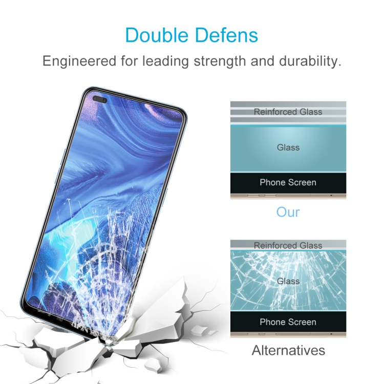 Para Oppo Reno4 50 PCs 0.26mm 9H 2.5D Película de Vidrio Templado