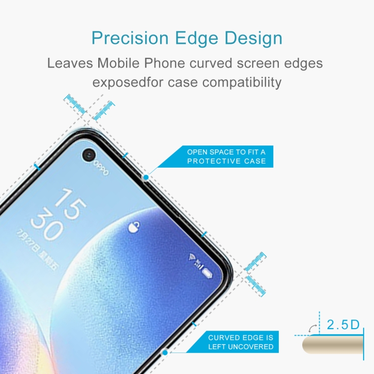 Para Oppo Reno5 K 50 PCs 0.26mm 9H 2.5D Película de Vidrio Templado