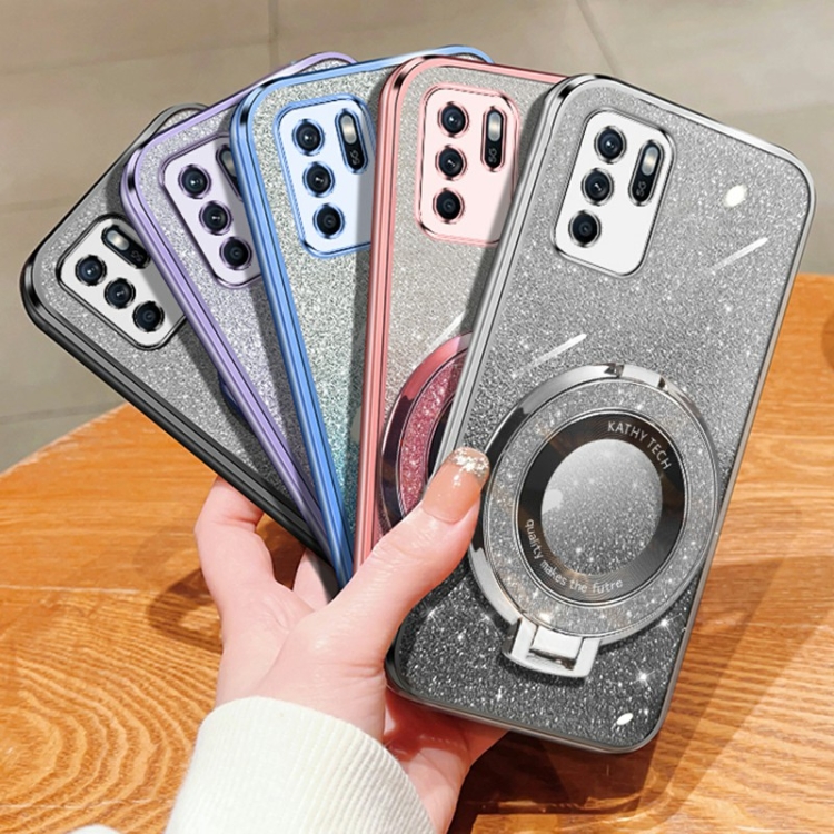 Para Oppo Reno6 Z Funda para Teléfono de TPU con Soporte Redondo y Brillo Degradado Plateado (Plata)