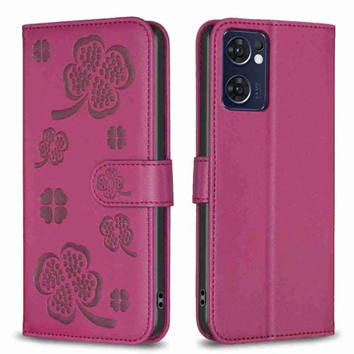 Para Oppo Reno7 5G / Find X5 Lite Funda para Teléfono de Cuero con Relieve de Cuatro Hojas (Rojo Rosa)