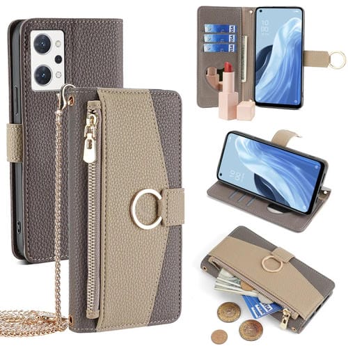 Para Oppo Reno7 a Jp Version Crossbody Litchi Texture Funda de Cuero para Teléfono (Gris)