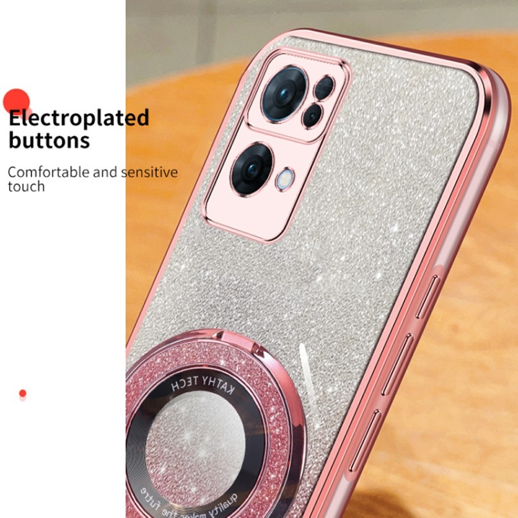 Para Oppo Reno7 Pro 5G Estuche para Teléfono de TPU con Soporte Redondo y Brillo Degradado Plateado (Púrpura)