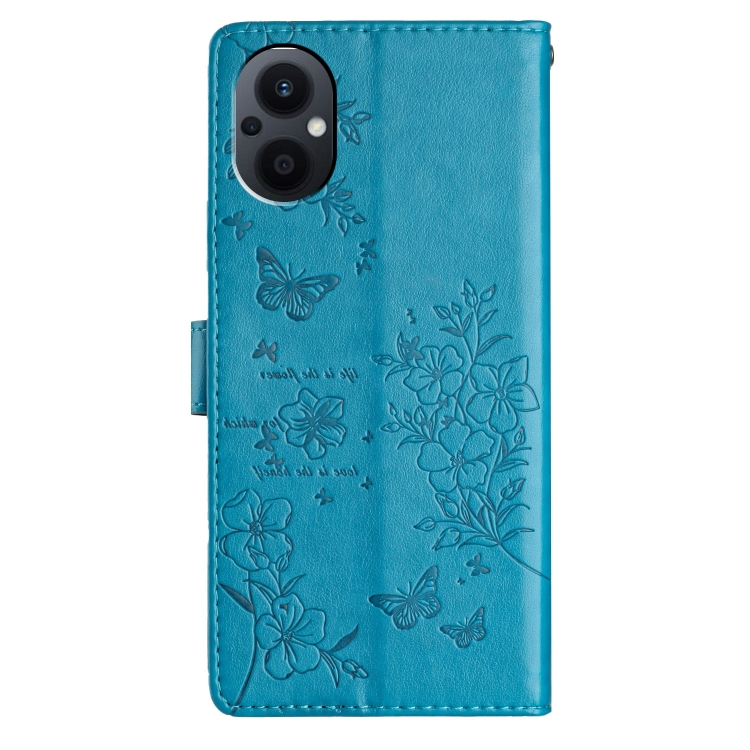 Para Oppo Reno7 Z 5G Funda para Teléfono de Cuero con Relieve de Flor de Amor y Mariposa (Azul)