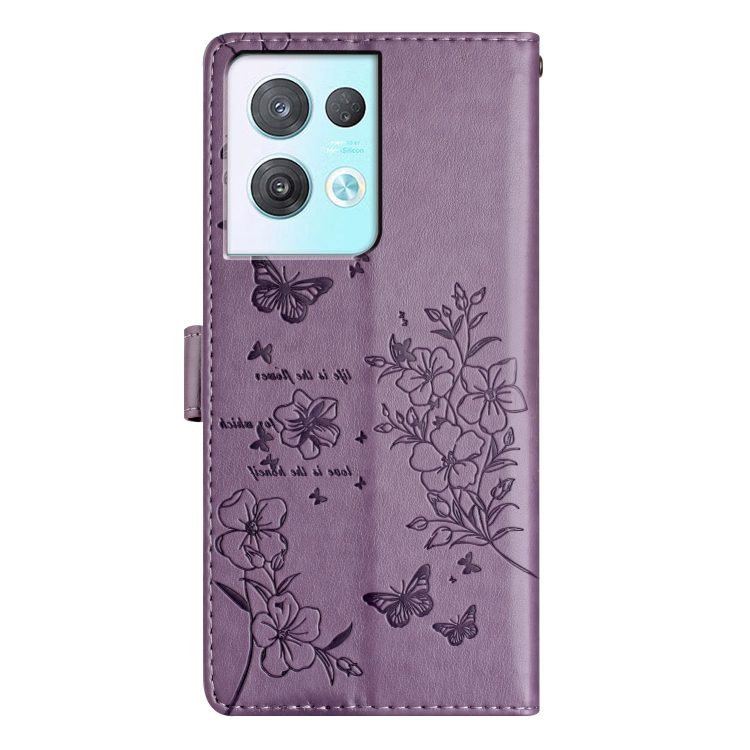 Para Oppo Reno8 Pro 5G Global Butterfly Love Flower Funda de Cuero para Teléfono En Relieve (Púrpura)