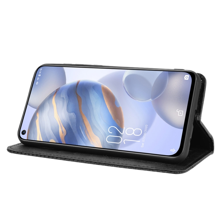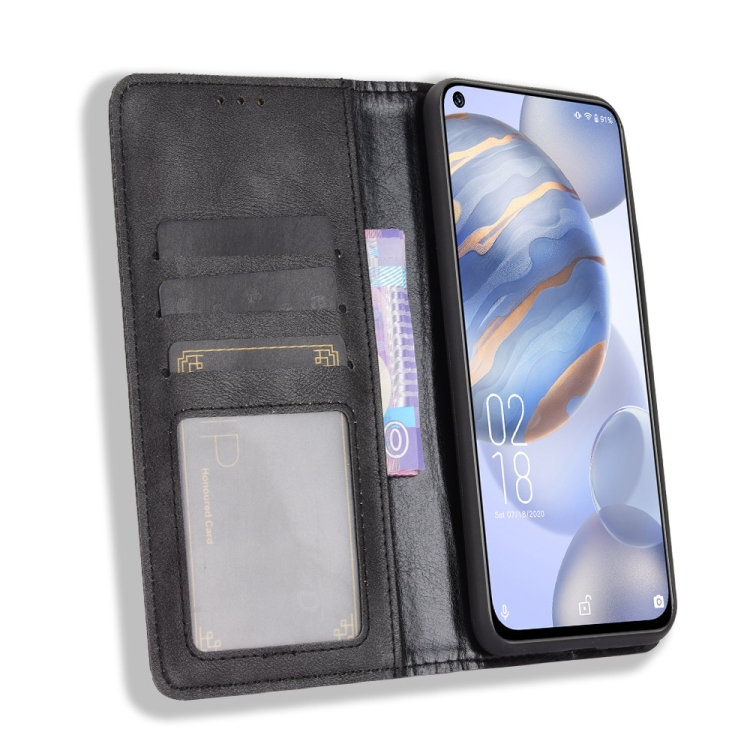 Funda de Cuero para Oukitel C21 con Hebilla Magnética, Soporte, Ranuras para Tarjetas y Marco de Fotos (Negro)